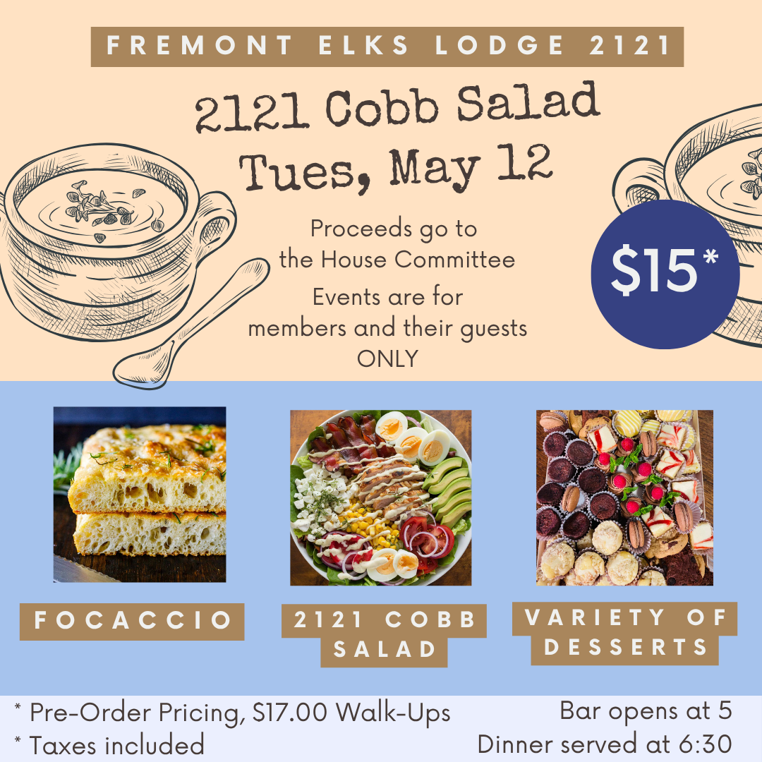 2121 Cobb Salad, Focaccia, and Variety of Desserts