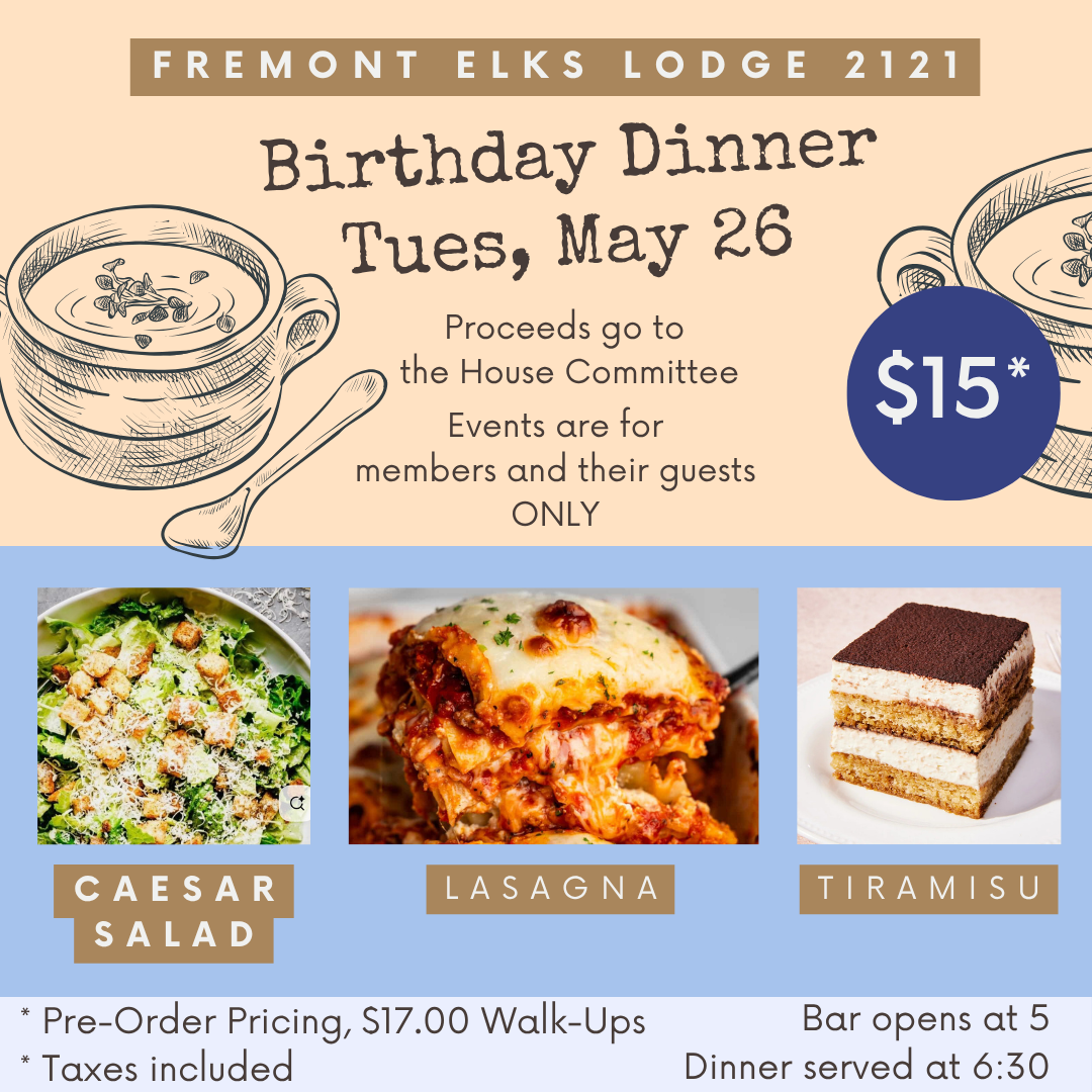 **To-Go Meals**: For those interested in “to-go” meals, please note that you would like your dinner to go at the time of ordering online. Any to-gos requested day of, will be served at the end of service or when time allows. There is a $1 charge for all to-go containers purchased per order.